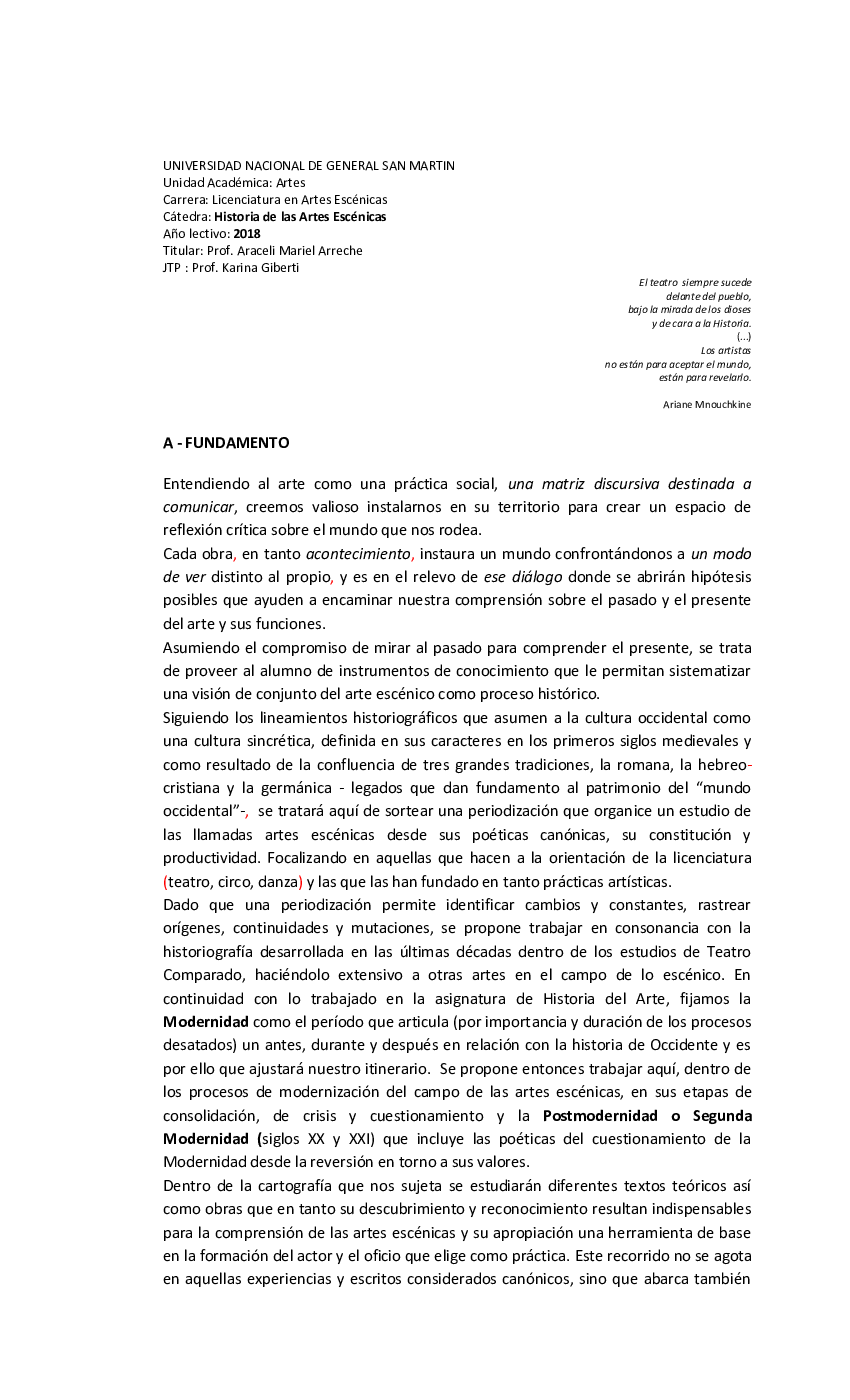 La asignatura desarrolla la evolución de la historia de la danza y del teatro en el contexto de la idea de arte total, de transversalidad de las artes. 36 horas (2 horas semanales durante el primer cuatrimestre) programa: Historia de las artes escénicas. De todos modos, se puede descargar en formato pdf, si se pincha aquí. Contenido el modulo tiene dos bloques de contenido: La asignatura desarrolla la evolución de la historia de la danza y del teatro en el contexto de la idea de arte total, de transversalidad de las artes. Aug 12, 2016 · 22 abril, 2018. Los albores de la teatralidad... Historia de las artes escénicas.